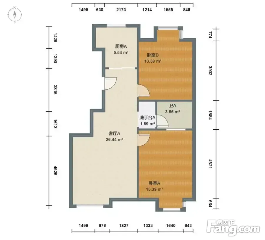 户型齐全,主打户型方正,明厨,主卧朝南二居