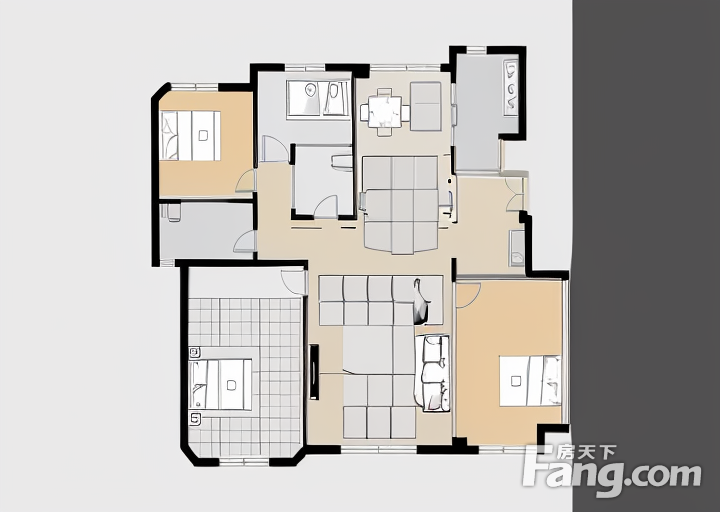 户型齐全,主打户型方正,明卫,明厨,客厅朝南,全明格局三居