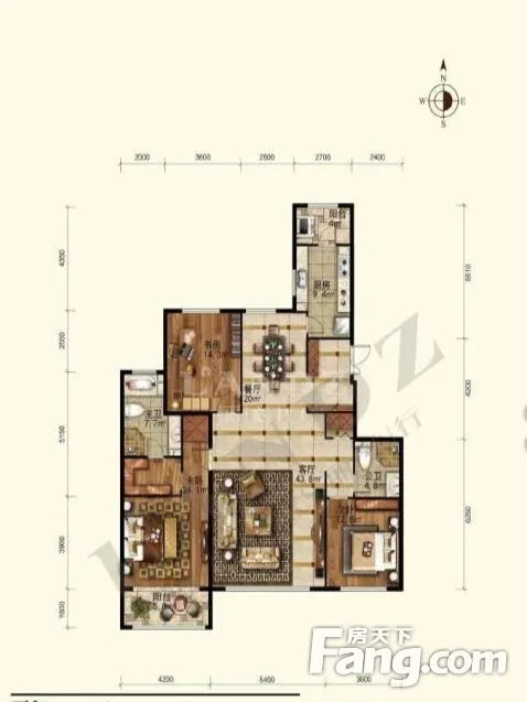 户型齐全,主打户型方正,独立衣帽间,明卫三居
