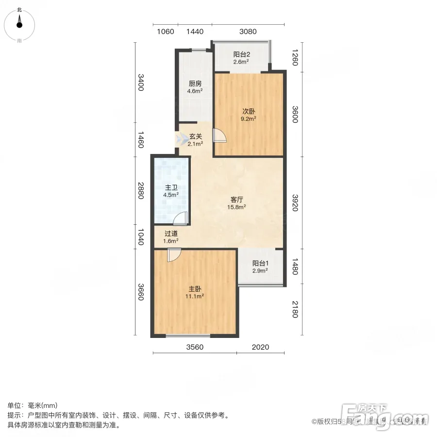 户型齐全,主打客厅朝南,双阳台,主卧朝南二居