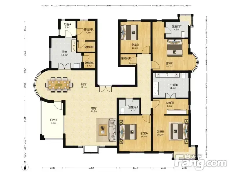 房屋拥有相对宽松的尺寸,布局通透,动静分离,设计豪华