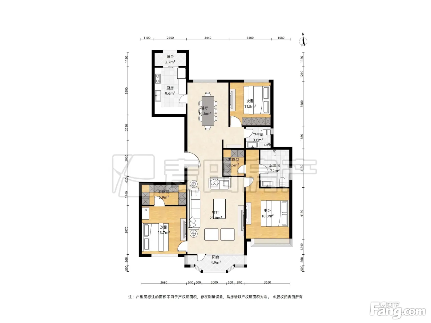 户型方正,客厅有40平米 两个卫生间都是明的 采光视野好