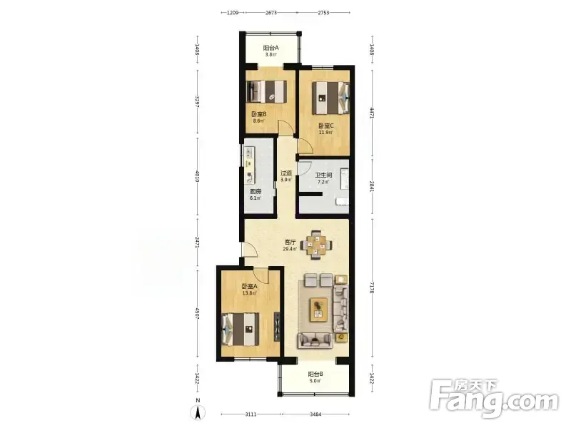 大红罗厂3号院 3室1厅 南 北