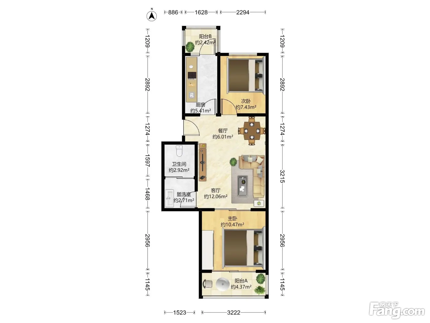 户型齐全,主打户型方正,明卫,独立衣帽间,客厅朝南,双阳台,主卧朝南三居