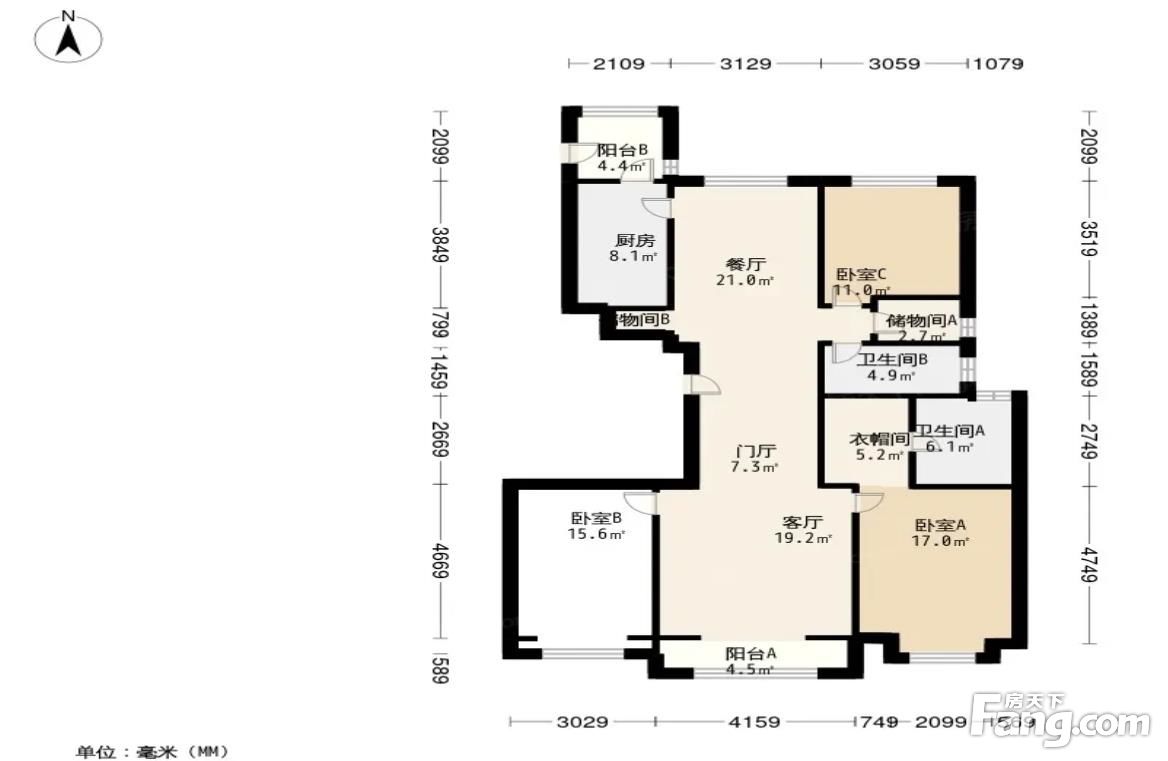 远洋东方公馆 3室2厅 南 北
