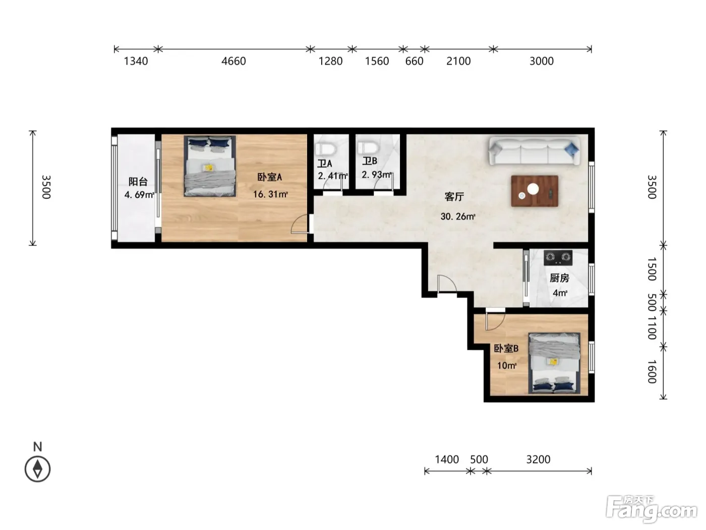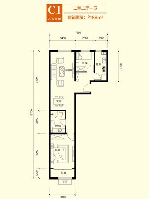 户型介绍:此房户型为2室1厅2卫,建筑面积为89.61平米,朝向为东西。
