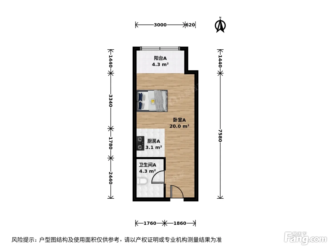 中天国际 1室0厅 北