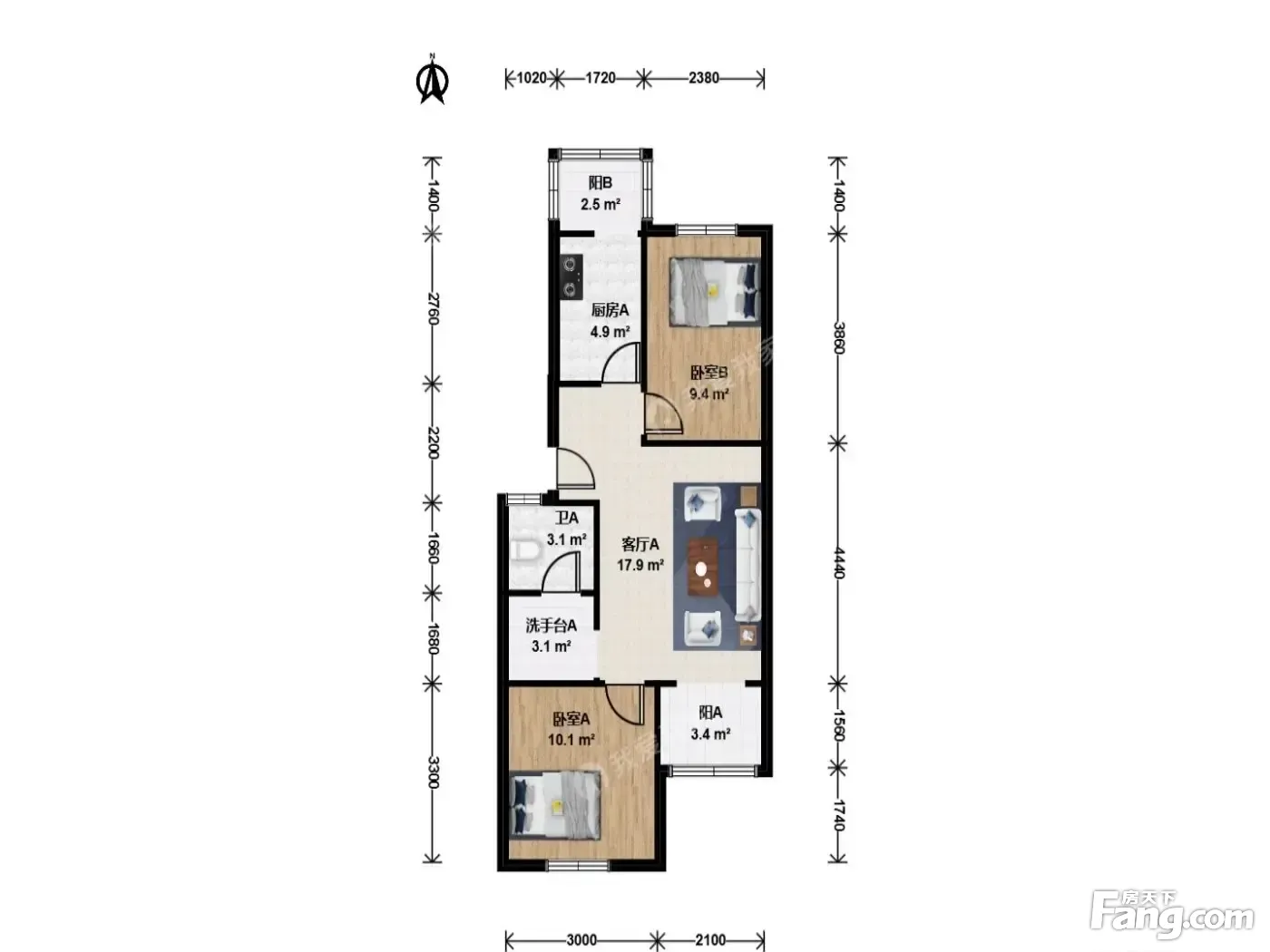 阎村·燕化星城健德一里南北向 两居室