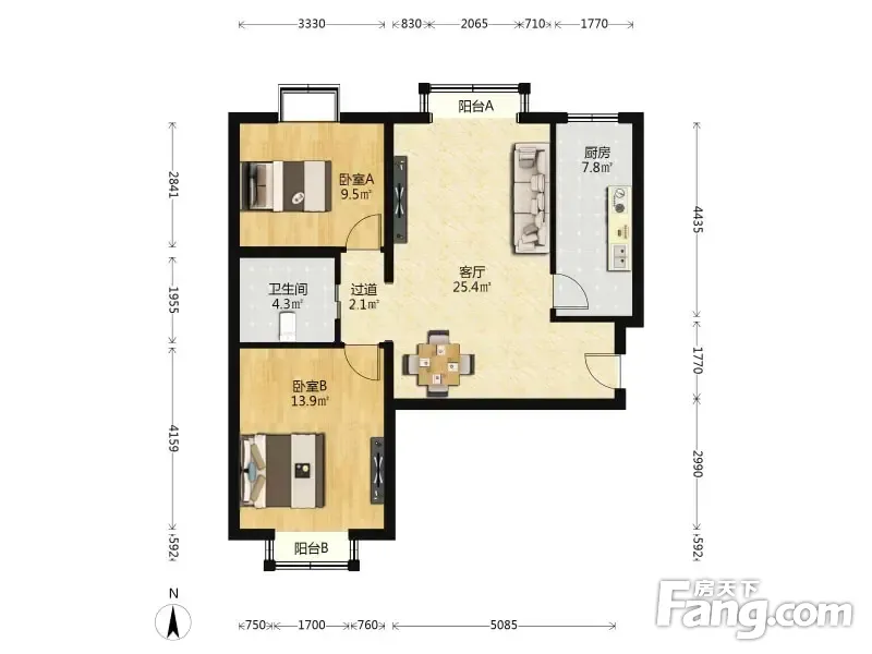 户型齐全,主打户型方正,明厨,双卧朝南二居