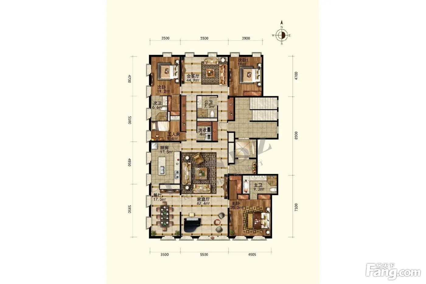 房屋拥有相对宽松的尺寸,布局通透,动静分离,设计豪华