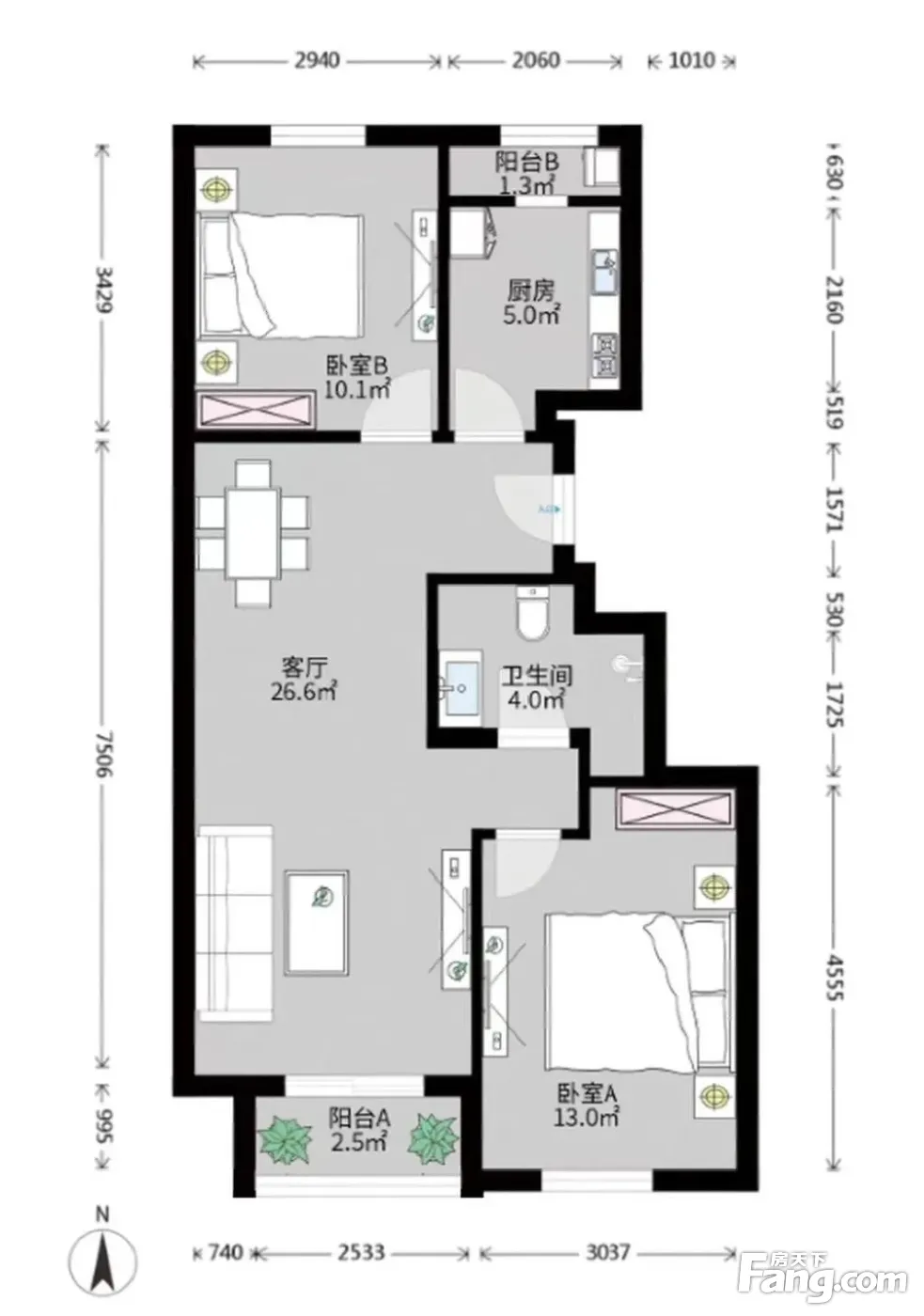 户型齐全,主打双阳台,主卧朝南二居
