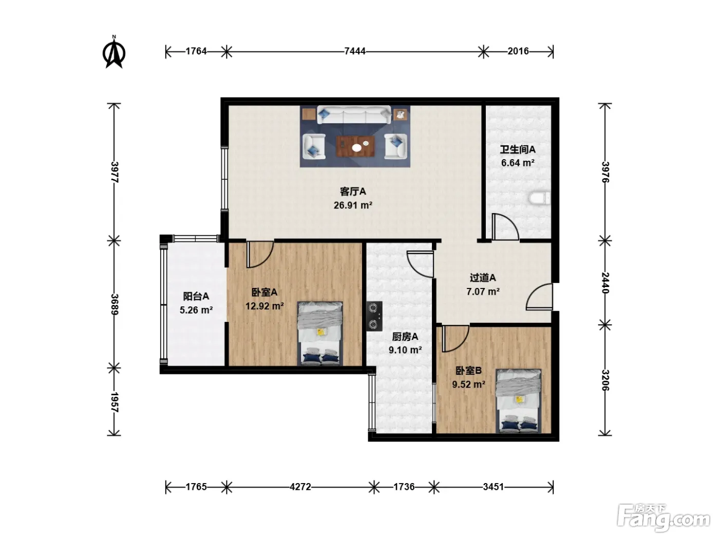 户型齐全,主打客厅朝南二居