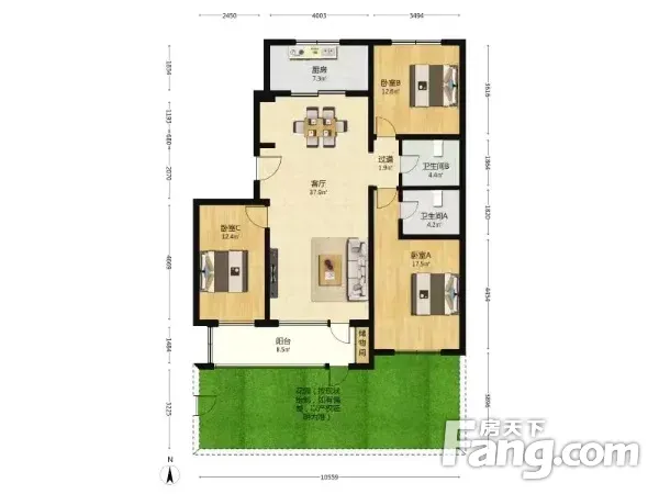 房屋拥有相对宽松的尺寸,布局通透,动静分离,设计合理