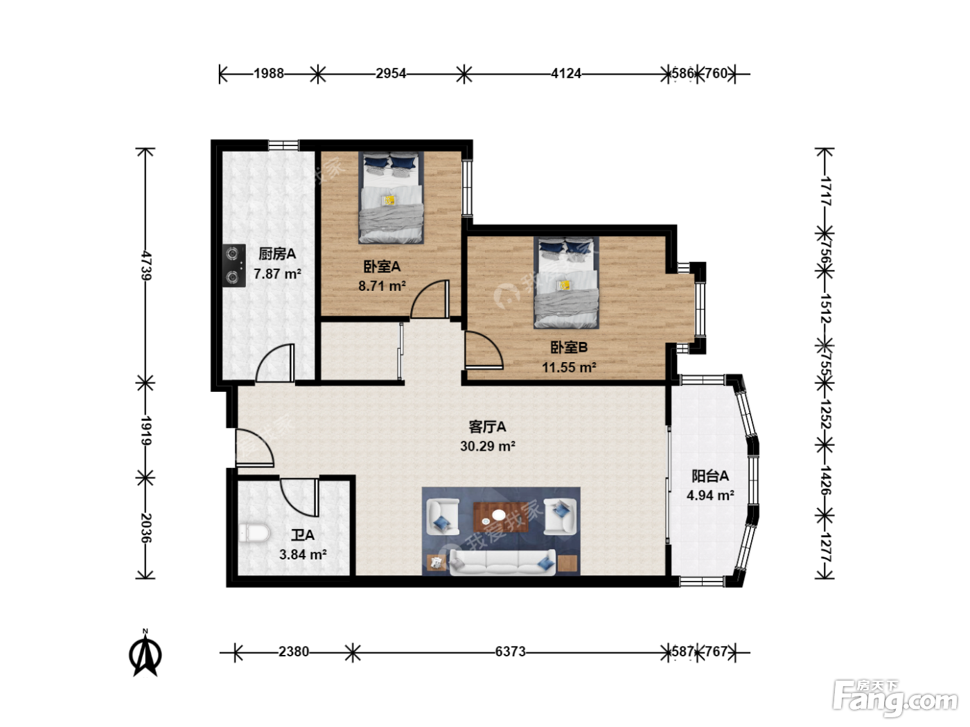户型齐全,主打主卧朝南二居