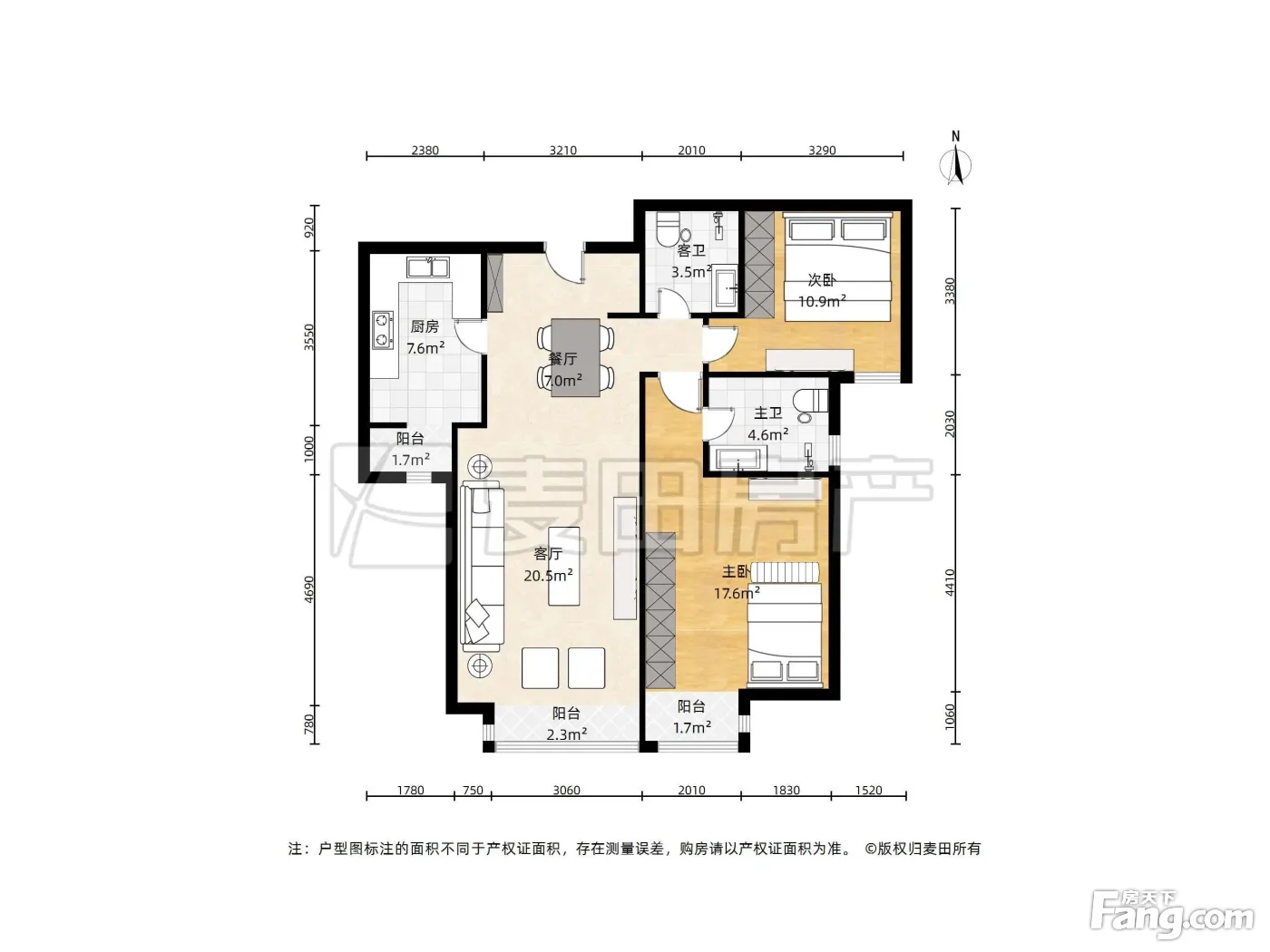 户型方正,客厅有40平米 两个卫生间都是明的 采光视野好