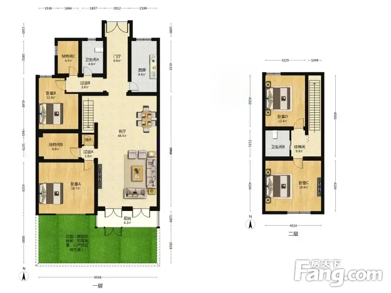 叠拼别墅一层 带30多平米正规花园 格局方正公摊小