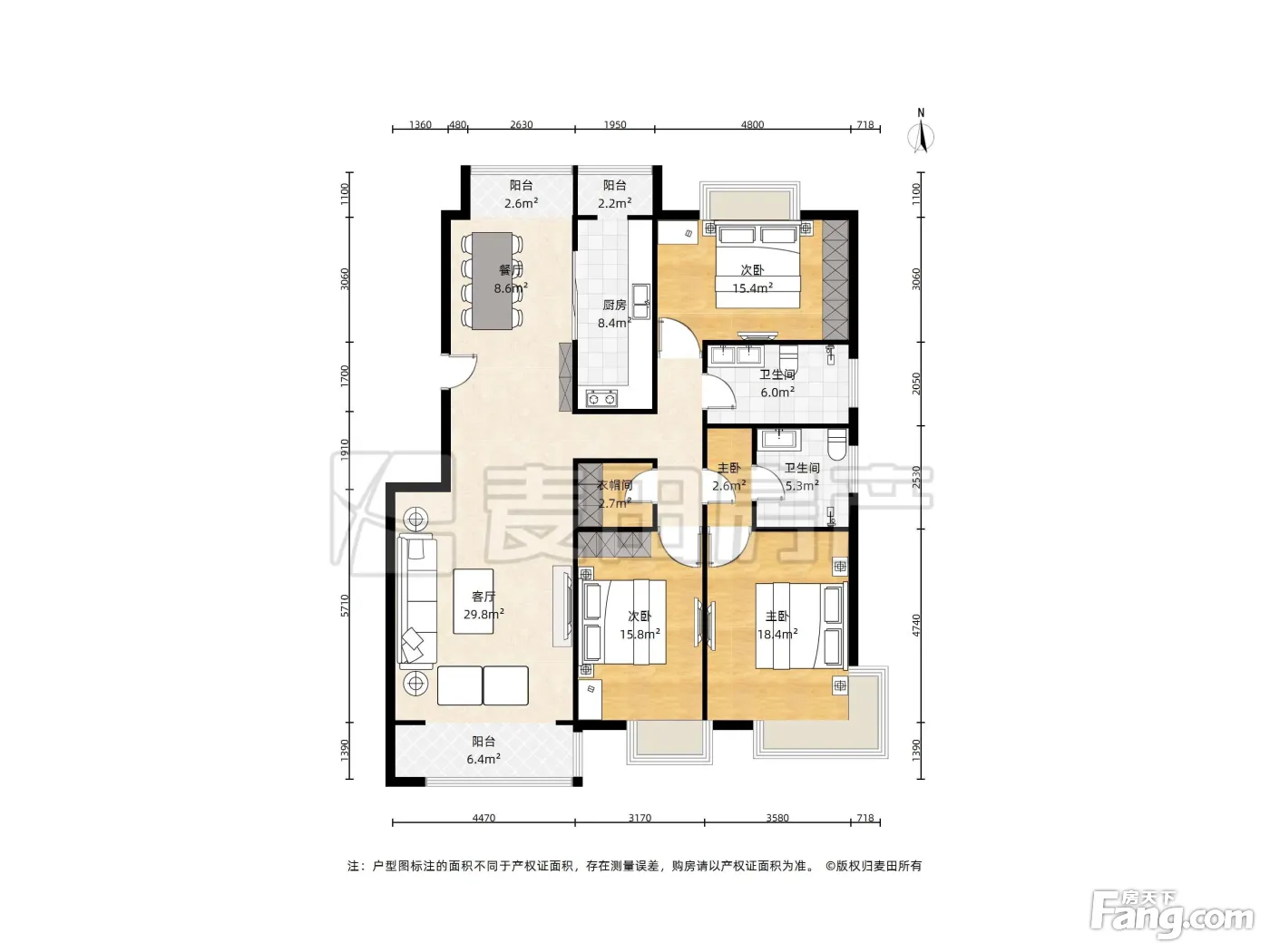 、22平-190平的户型方正,明卫,客厅朝南,双阳台的四居