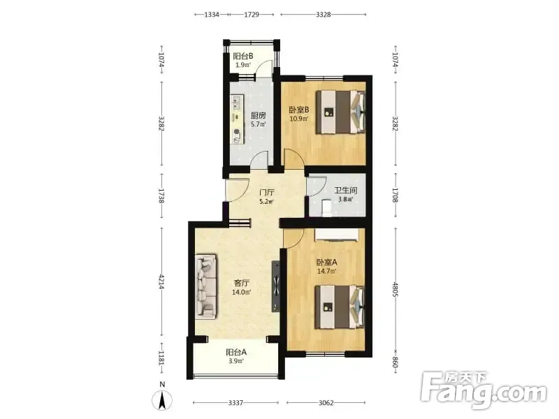 户型齐全,主打双阳台,主卧朝南二居