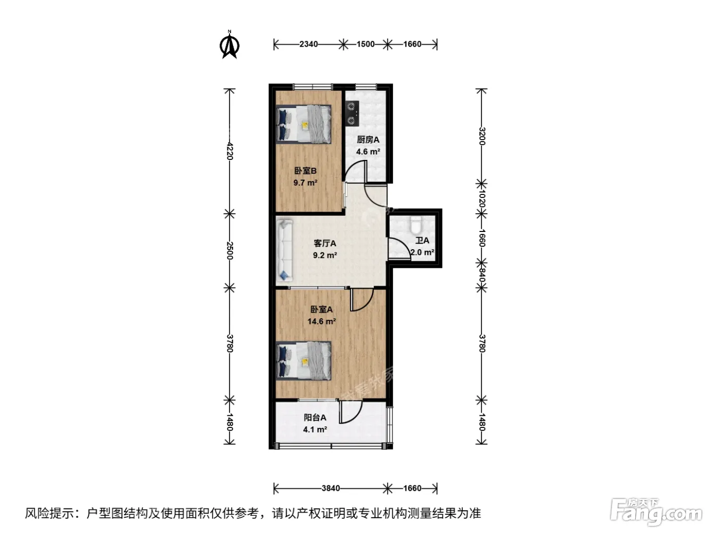 右安门西街2室1厅南北