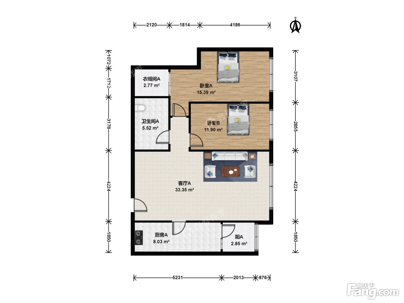 户型齐全,主打独立衣帽间二居