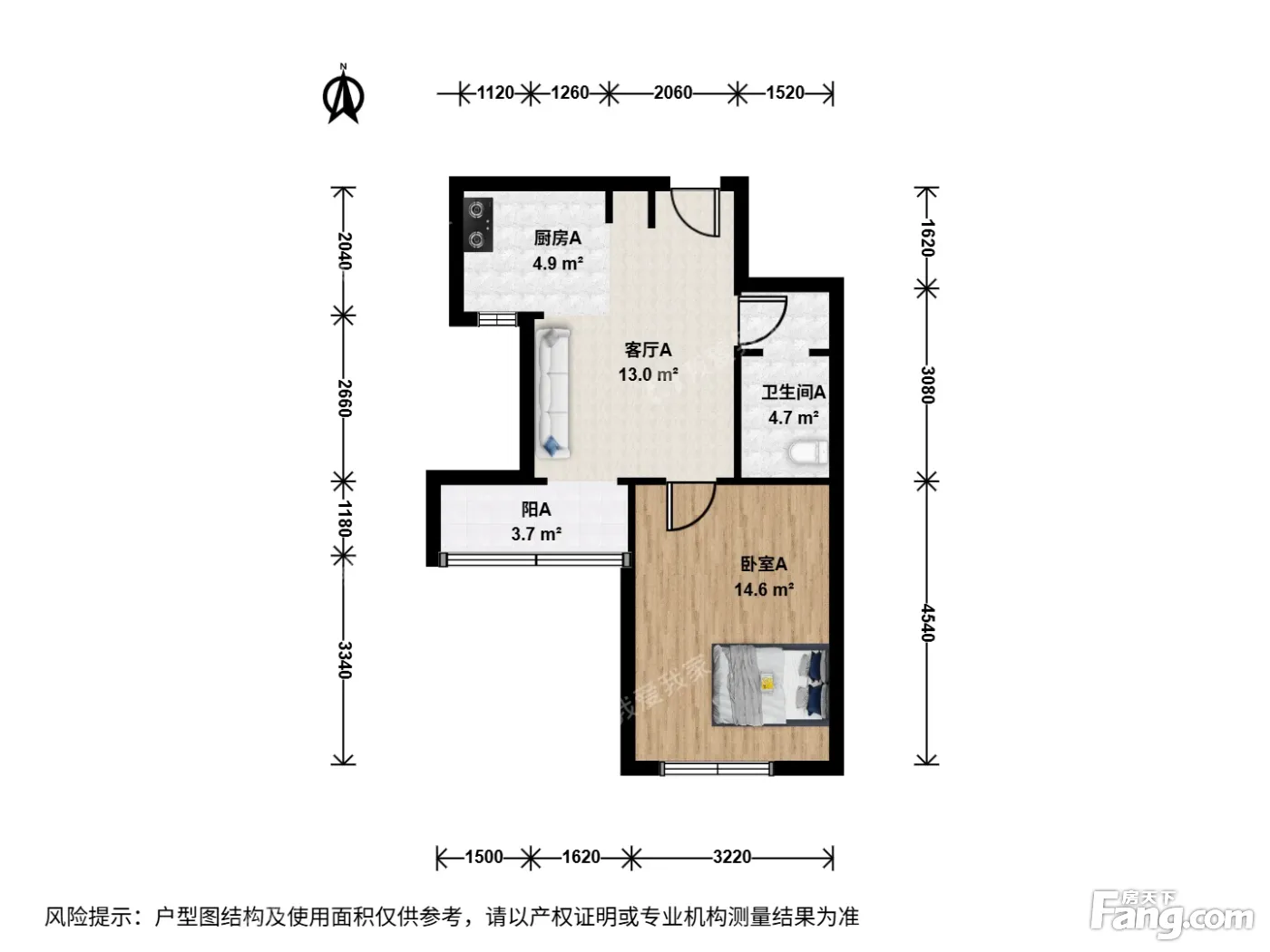 户型齐全,主打明厨,客厅朝南二居