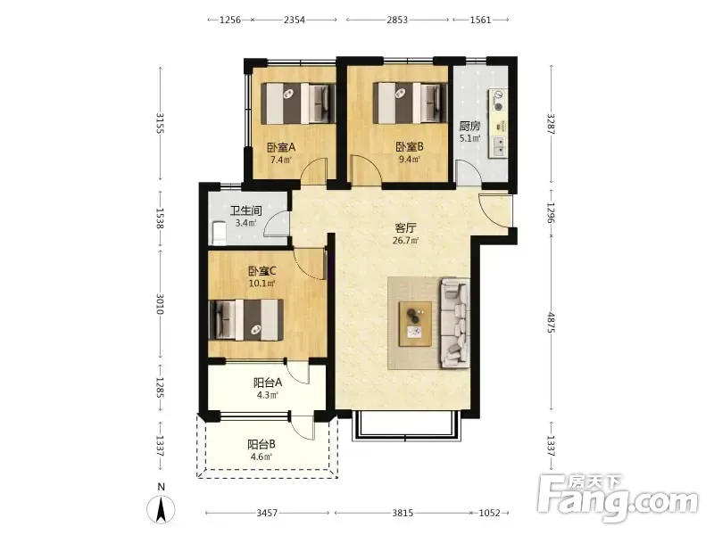 户型齐全,主打客厅朝南三居
