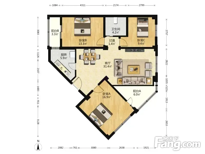 3室2厅1卫