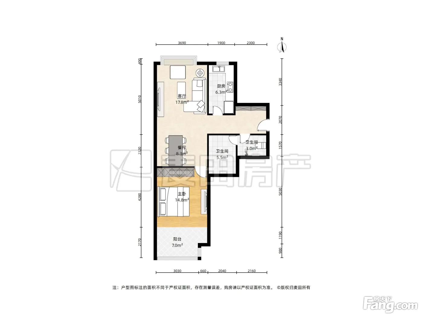 户型齐全,主打户型方正,明厨,客厅朝南,主卧朝南二居