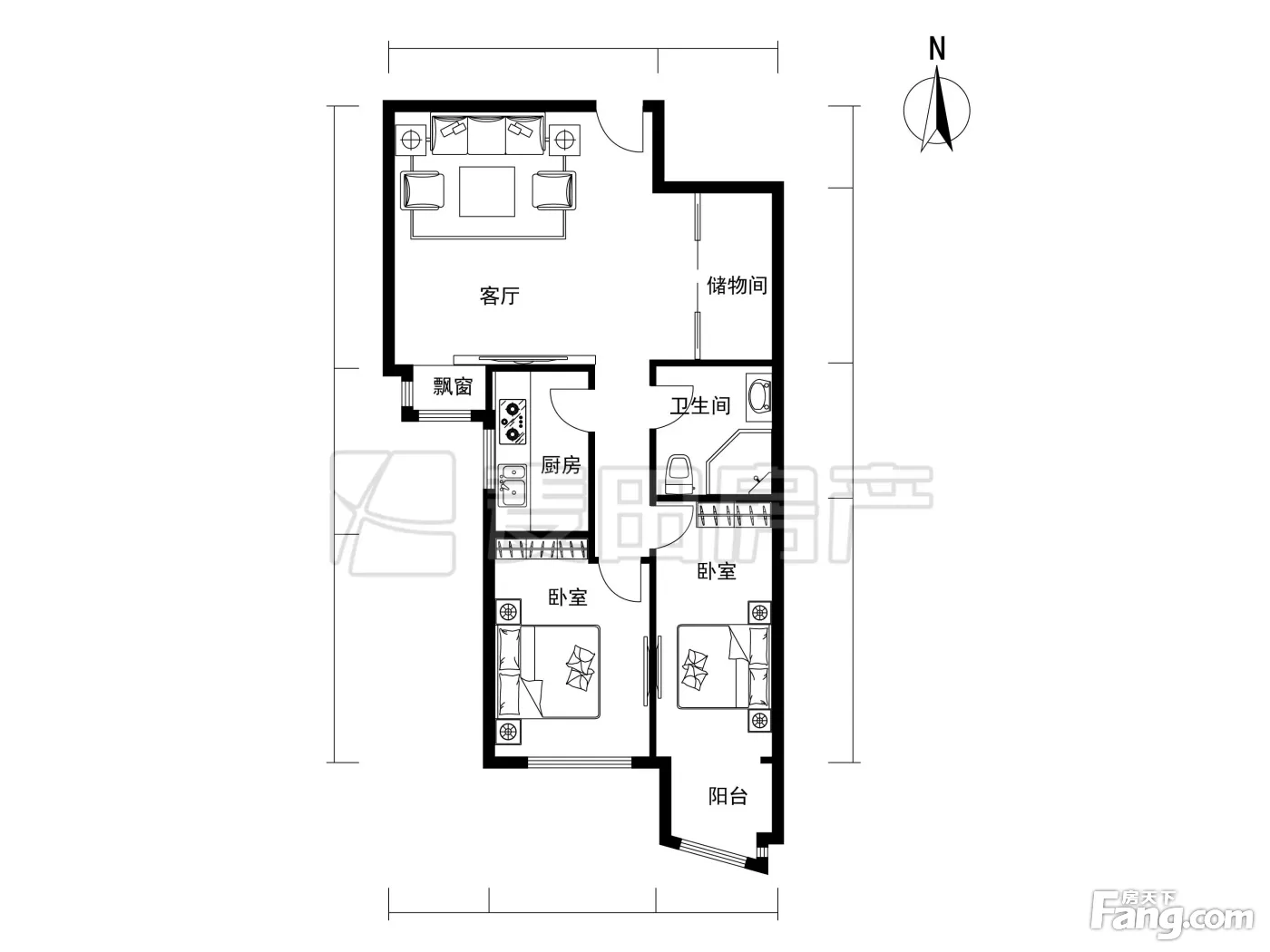 户型齐全,主打户型方正,明卫,明厨,主卧朝南二居