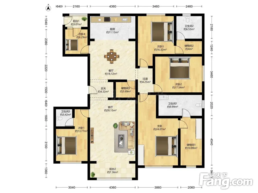 户型齐全,主打户型方正,明卫,双阳台三居