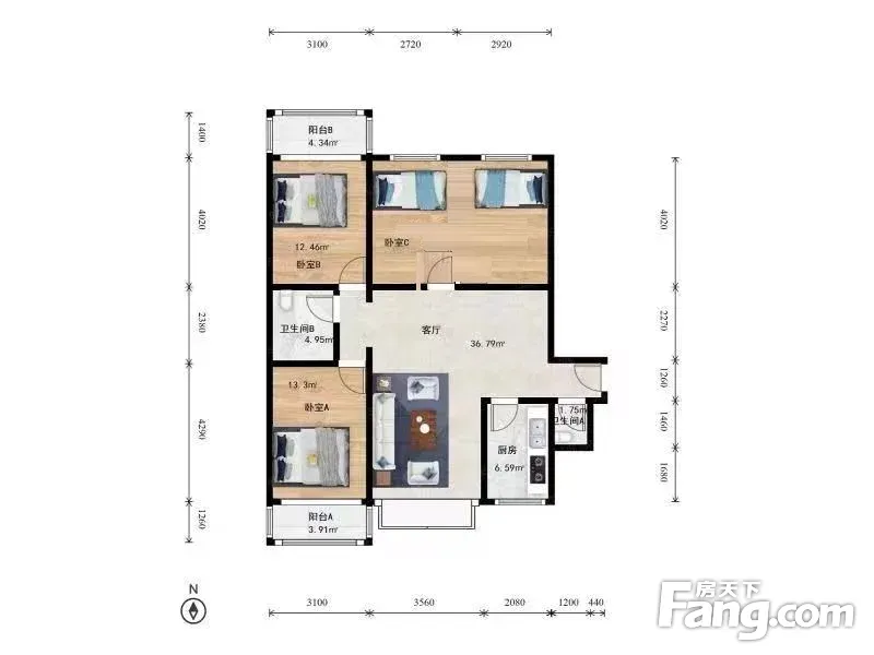 户型齐全,主打户型方正,明厨,双阳台四居