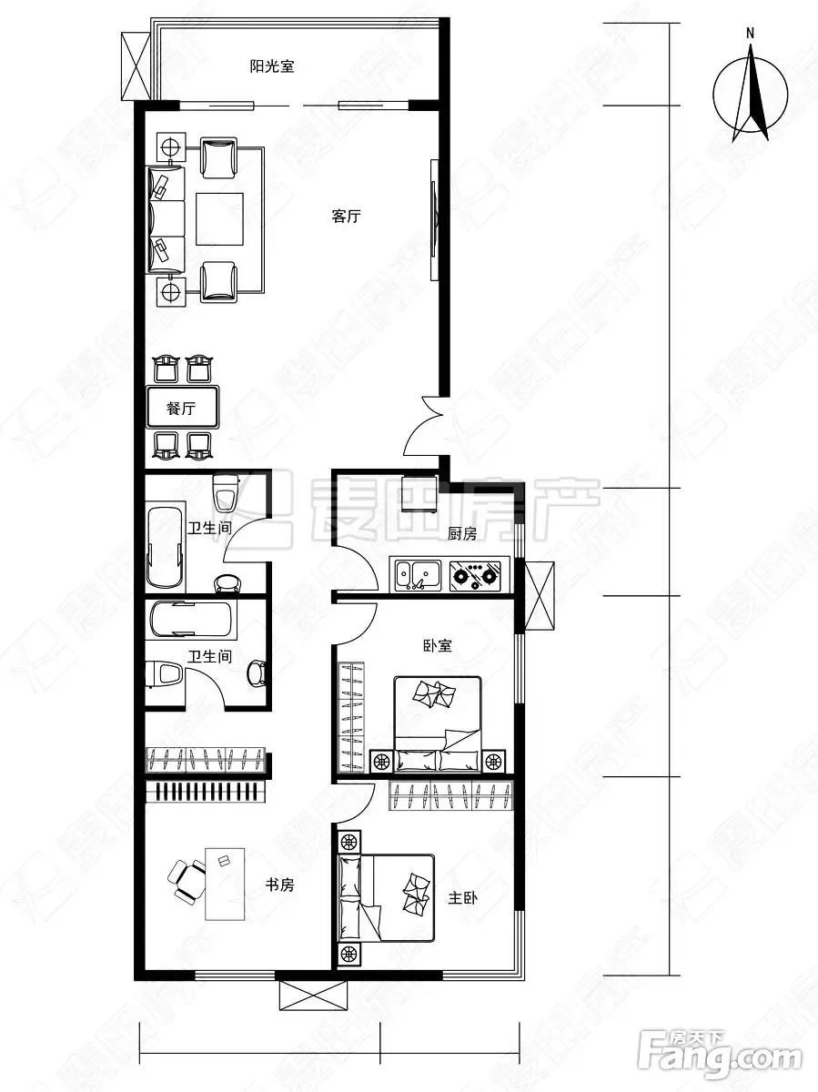 户型齐全,主打南北通透,全明格局三居