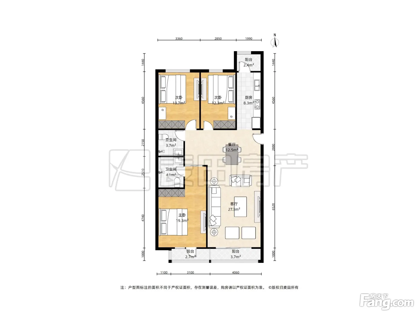 本家润园 南北3居 户型方正 全天采光 使用率高
