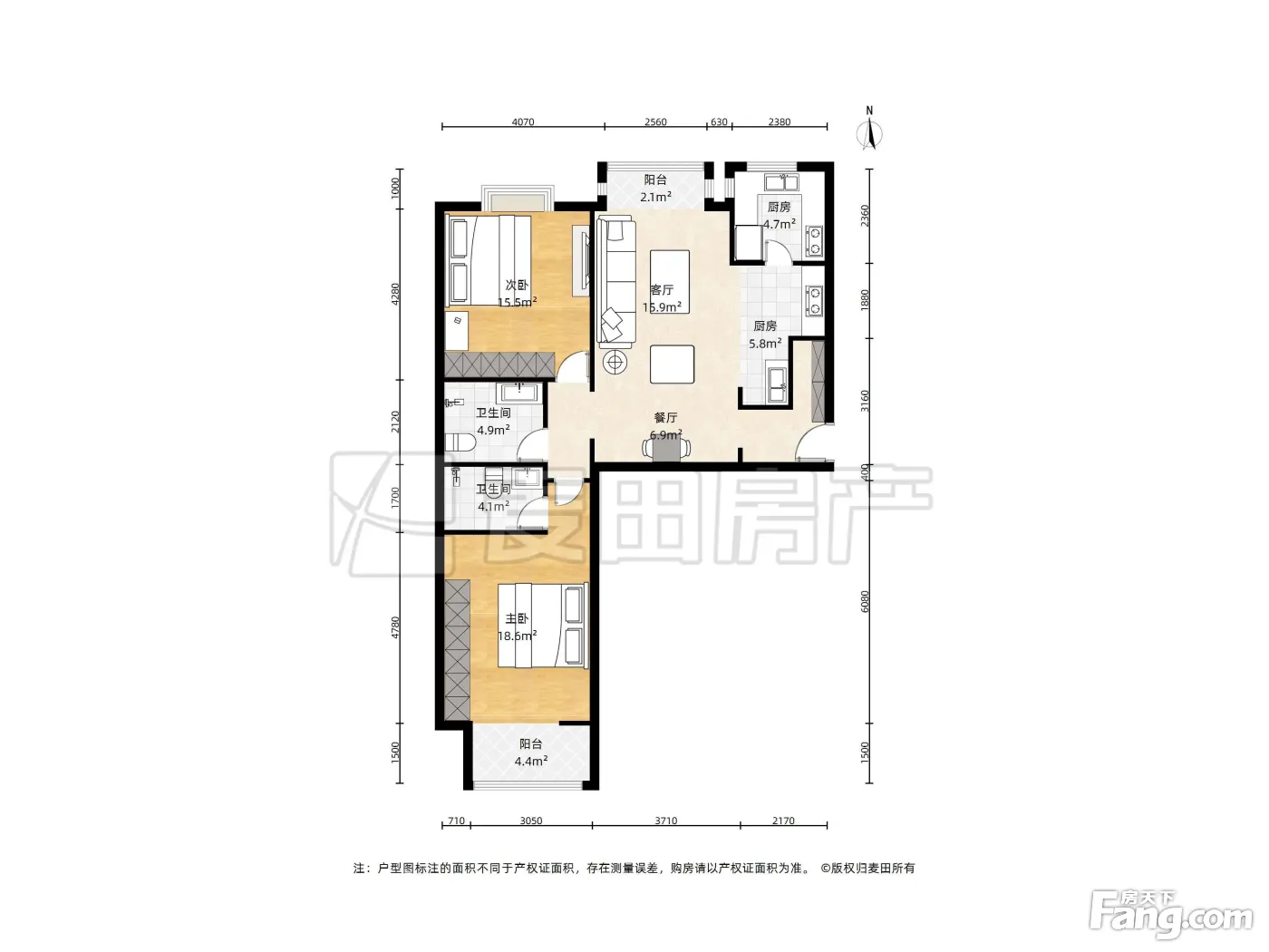 国风北京南北通透二室二卫户型板正中间楼层