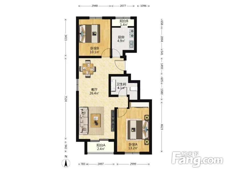 户型齐全,主打双阳台,主卧朝南二居