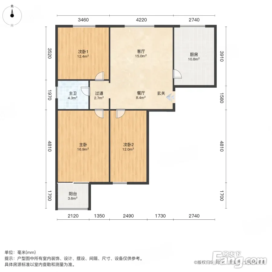首开康乃馨城3室1厅南北