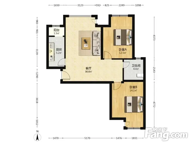 龙山华府 2室2厅 南 北