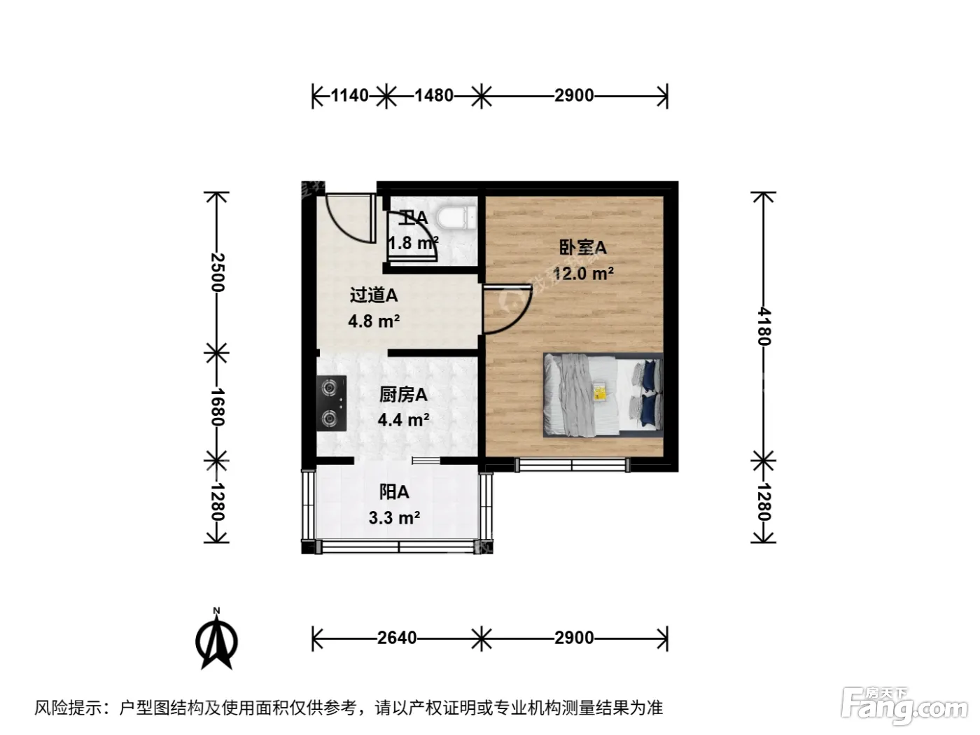 新外大街甲8号院 1室1厅 南