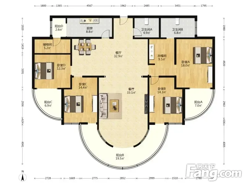房屋拥有相对宽松的尺寸,布局通透,动静分离,设计豪华