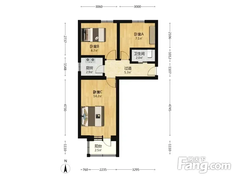 西环里3室1厅南北