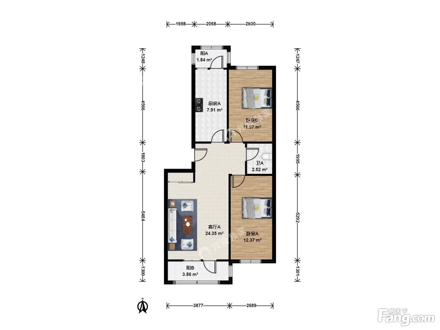 户型齐全,主打客厅朝南,双阳台二居