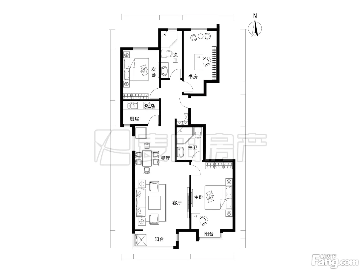 首开国风美唐三期 3室1厅 南 北