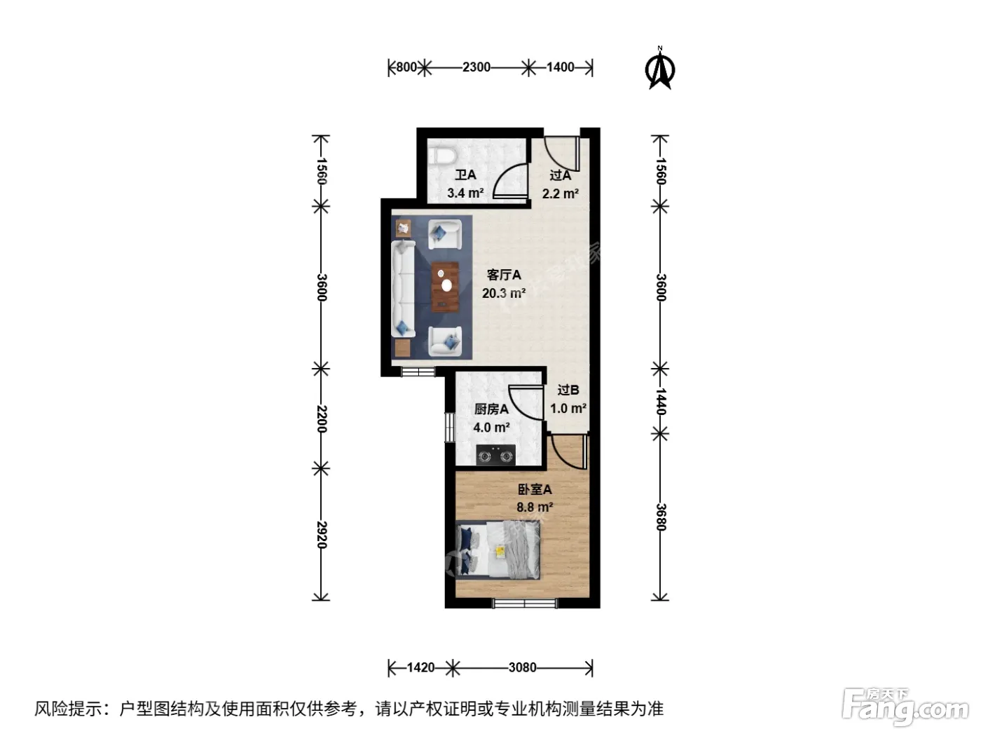 华远铭悦园 1室1厅 南