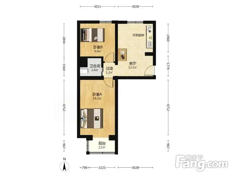 八角北路 2室1厅 北 南