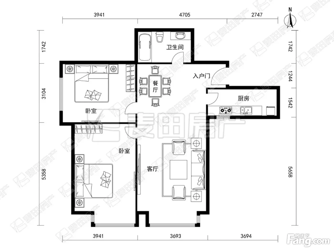 户型齐全,主打户型方正,明厨,客厅朝南,主卧朝南二居