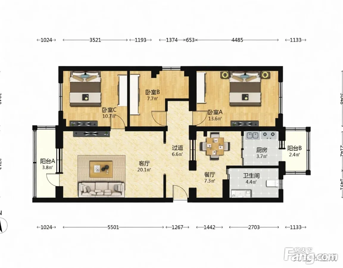 户型齐全,主打明卫,客厅朝南,双阳台三居