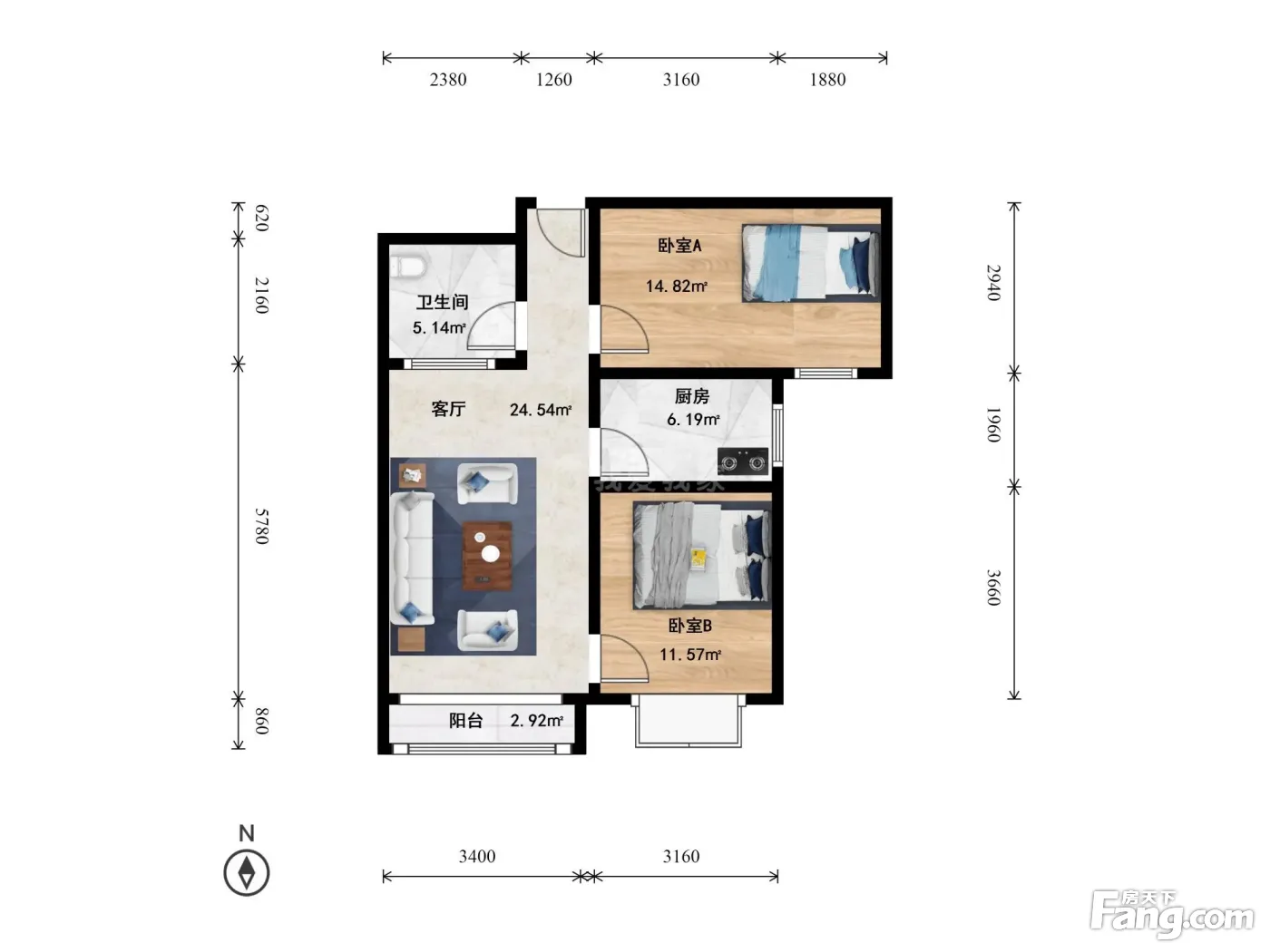 户型齐全,主打户型方正,明厨,主卧朝南二居