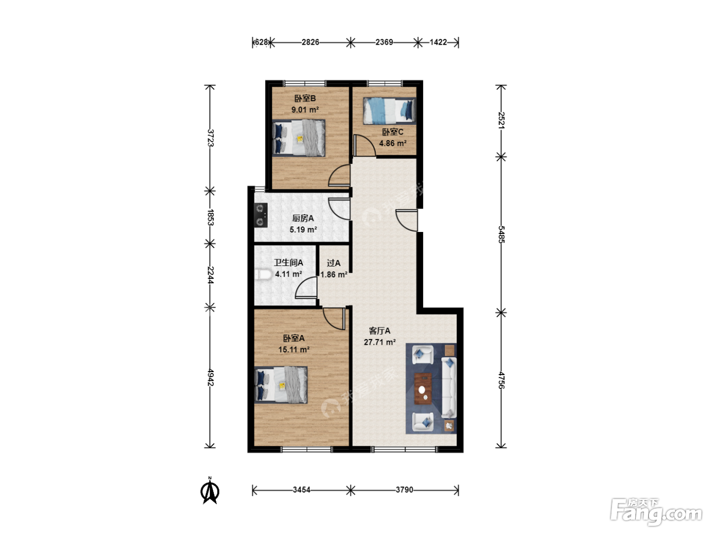 中国铁建原香嘉苑西区 3室1厅 南 北