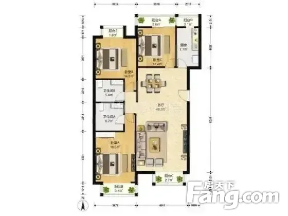 户型齐全,主打户型方正,双阳台,客厅朝南三居