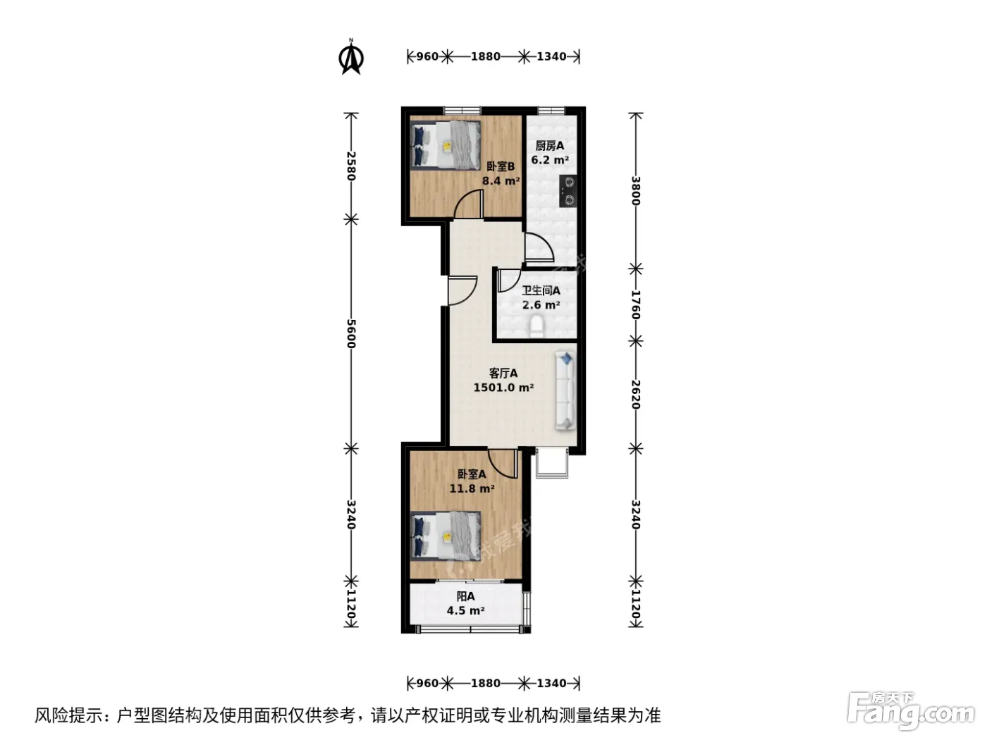 户型介绍:此房户型为2室1厅1卫,建筑面积为60.98平米,朝向为南北。